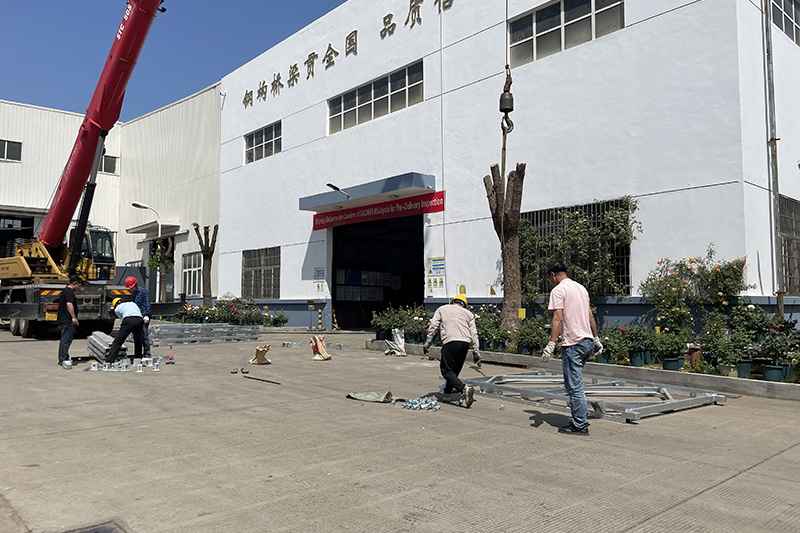 Объект, возводимый на заводе нашей компании, представляет собой специально изготовленный пирс Bailey Bridge для Федерации Малайзии с целью проверки общей устойчивости и несущей способности этого пирса. Физический объект будет представлен должностным лицам Малайзийского департамента по ликвидации последствий стихийных бедствий для проверки и приемки. Сборный пирс имеет общую высоту 10 м с регулируемой высотой 4 м, 7 м и 10 м. Ширина составляет 8 м, и она может удовлетворить нагрузку на среднюю опору однополосного стального моста Бейли. Эта конструкция изготовлена с использованием той же панели типа 200, что и мост Бейли, отличается простой конструкцией, взаимозаменяемостью с материалами моста Бейли и высокой грузоподъемностью (одна колонна 100 тонн). Его будут продвигать в Малайзии.